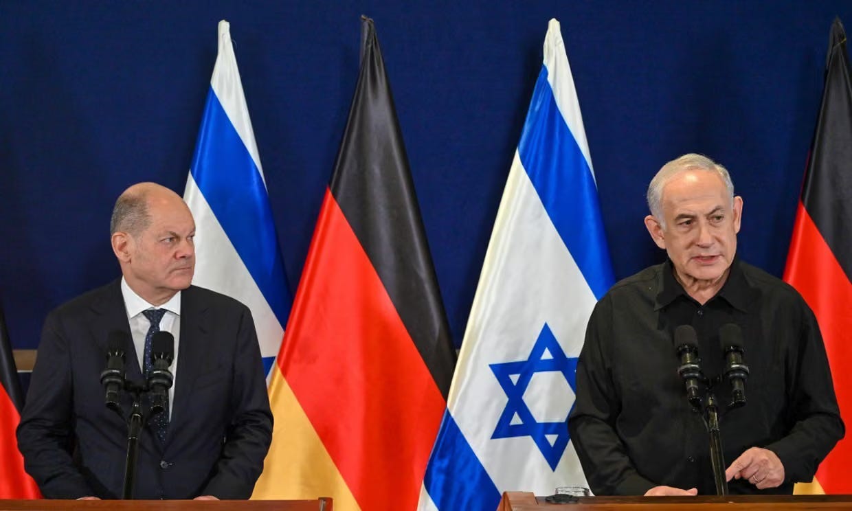 Chancellor Olaf Sholz with Israeli PM Benjamin Netanyahu, October 2023. Photo: Getty Images